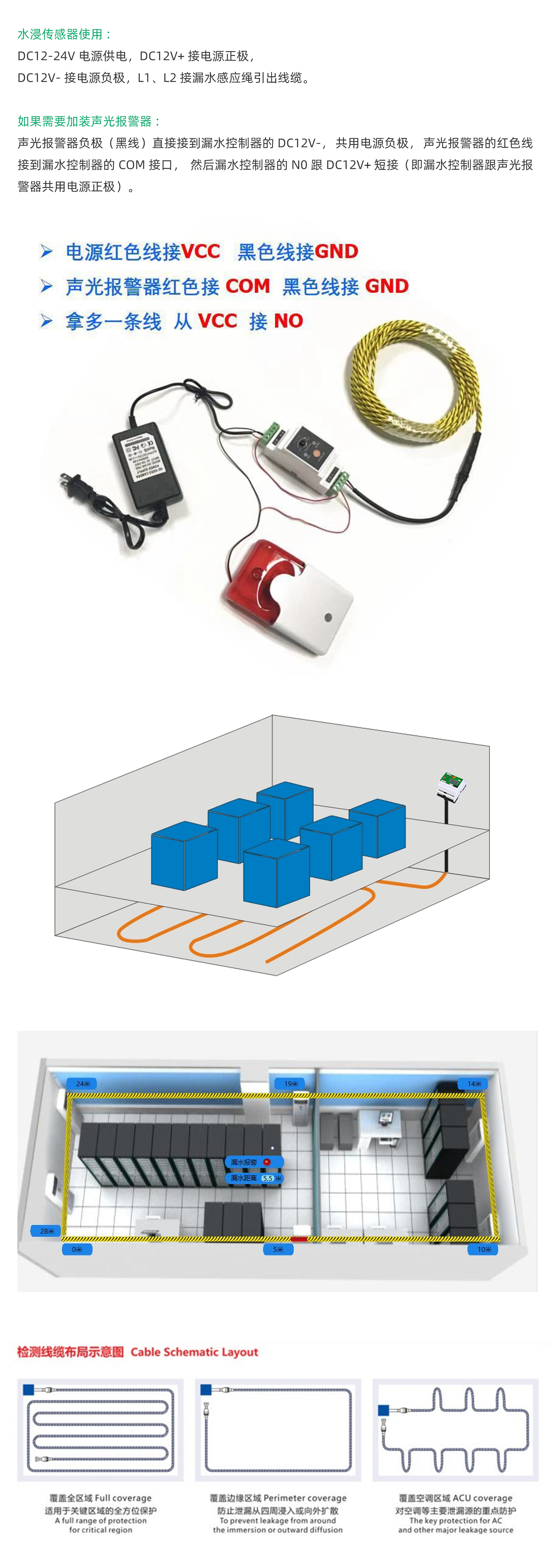 水浸傳感器漏水控制器感應繩接線與布線方式